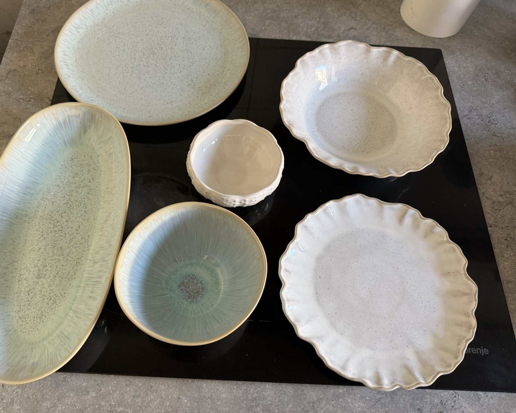 Es handelt sich um ein modernes Geschirr mit viel Licht und Farbe, das auf jeder Sommertafel gut zur Geltung kommt. Ein türkisblaues Geschirr mit sandigen Tönen aus Feinsteinzeug. Es kann mit verschiedenen Stilen auf dem Tisch kombiniert werden. Seine sanften Farben machen es zum schönsten Geschirr, das wir je kreiert haben.