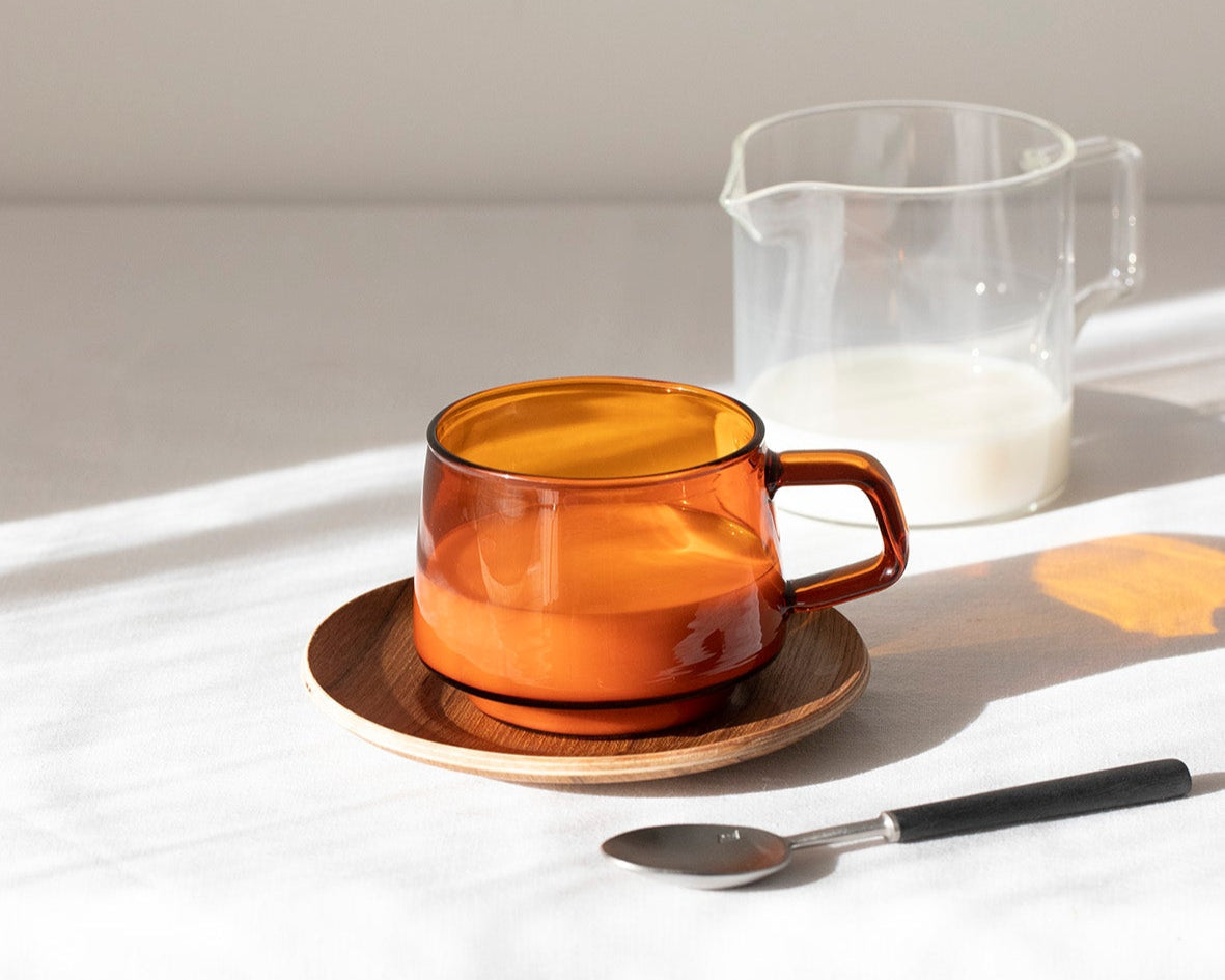 El juego de café Sepia de Kinto Japan nos encanta por su diseño y la belleza de su color ámbar. Ideal para ambientes de estilo nórdico. Un conjunto de taza y plato de líneas rectas y elegante que destaca además por la comodidad de uso.