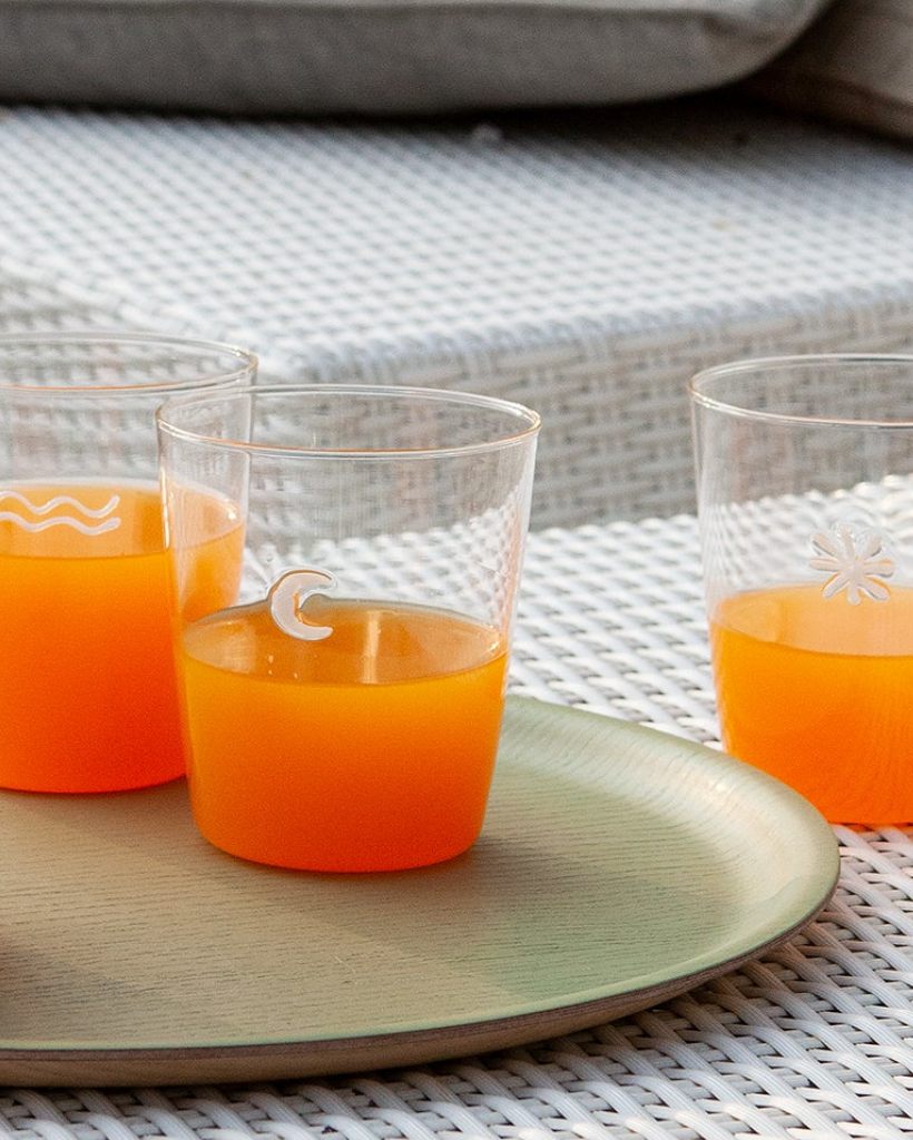 De Symbolen van Zafferano Ze behoren tot de meest originele collecties van het Italiaanse merk. Elk glas is handgemaakt van geblazen glas, wat het een unieke uitstraling geeft. elk stuk is uniek en onherhaalbaar Deze glazen zijn versierd met opvallende reliëfsymbolen en zijn ware staaltjes van hedendaags design.