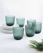 Set 6 vasos Textures Mix Olive Green + Jarra de agua Textures Clear.